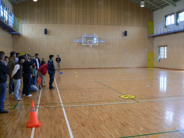 昼食の時間帯は体育館で一般の人の体験飛行ができます。 |