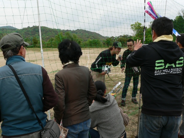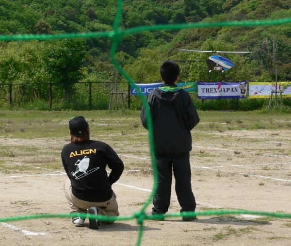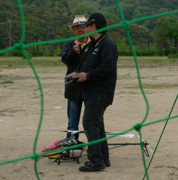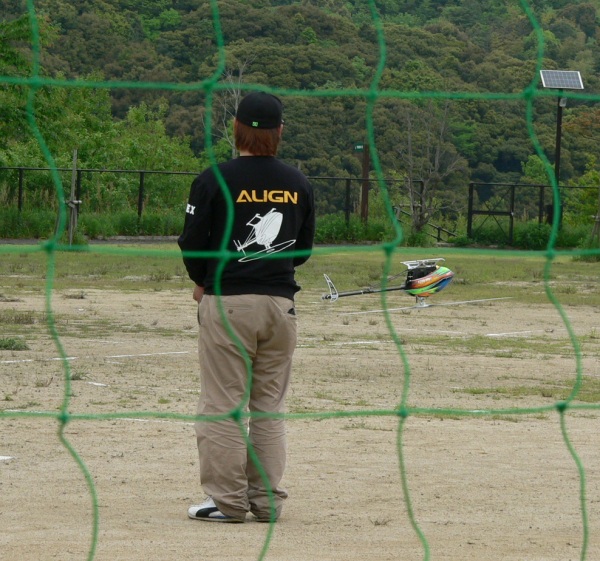 よーちゃんのフライトも凄かったです。最初のフライトではTREX700を3mぐらいの高さからテールスライドで落としてしまいました、ある意味見せるフライトで期待を裏切りません。 |
