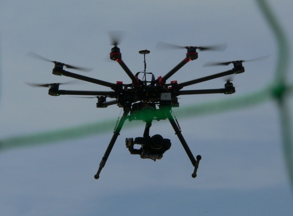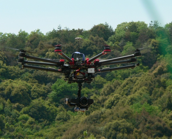 最近流行のマルチコプターですがこれはプロ仕様で軽自動車並みのお値段とか。 |