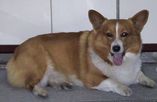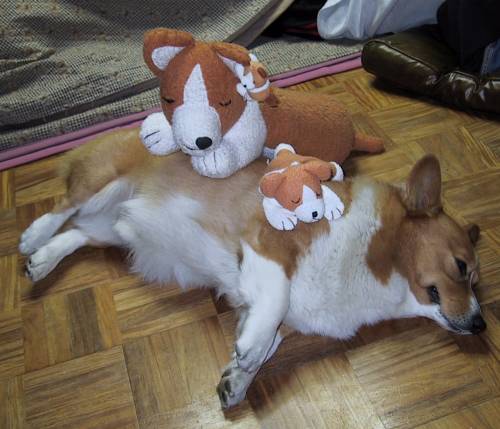 最近はやりの THE DOG のキャラクターみたい。 うちにもたくさんコーギーグッズがあります, |